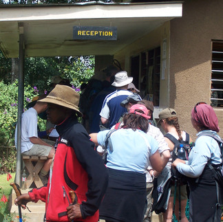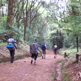 Up at 5 Am for morning duties (poop and writing in the moonlight), 6:30 is breakfast! After a quick breakfast we break camp and leave for Mweka Gate at 7:50 arriving there at 10:50 to check out and get our certificates. Along the way we are passed by several of the folks we partied with the night before.