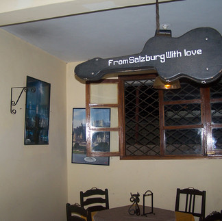 This place was a bit bizarre. The waitresses wore these leopard skin vests and hats and the décor was German with all this Volkswagen stuff all over and Mozart posters. The music was American 50’s and 60’s love songs played on plastic records. The food was outstanding. I guess we were hungry.